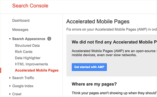 Here, Google will keep you updated on any potential errors found in your AMP-compliant posts.
