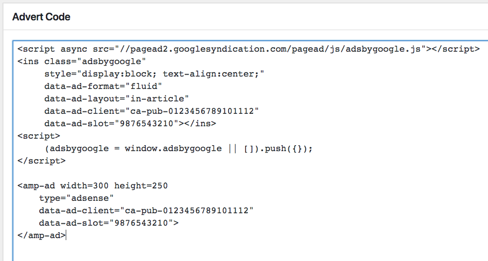Here’s how you should insert these Ad Codes in your AdSense plugin.